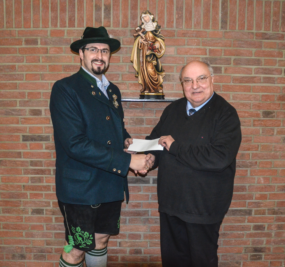 Vor kurzem konnte Bezirksleiter Gregor Wiedemann eine Spende in Höhe von 100,-€ an Herrn Pfarrer Karlheinz Reichhart übergeben. Die Spenden sind beim Hoigarten nach der Rorate des Bezirks Augsburg am 12.12.2013 in Horgau zusammen gekommen (siehe eigener Bericht). Das Geld kommt den Kindern des katholischen Kindergartens St. Martin in Horgau zugute. Ein Dankeschön erhielten die Trachtler im Gemeindeblatt der Gemeinde Horgau. Auch Dank dieser Spende konnten einige Neuanschaffungen wie größere Holzautos, Puppen, Tischspiele, Puzzles und vielem mehr noch in der Vorweihnachtszeit getätigt werden.