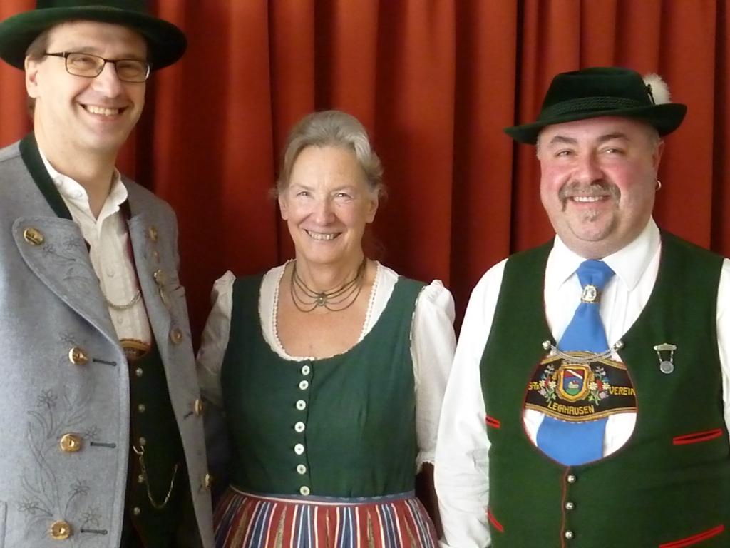Im Rahmen des Frühschoppens stellten der Lechhauser Vorstand Rudi Ohnemus und Gauvorstand Marianne Hinterbrandner das Jubiläumsprogramm vor. Mit auf dem Bild ist der frühere Vorstand der Lechhauser, Martin Hinterbrandner.