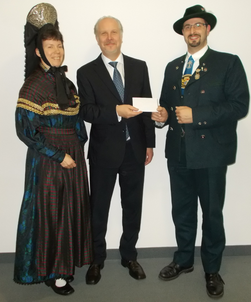Vor kurzem konnte Bezirksleiter Gregor Wiedemann eine Spende in Höhe von 200,-€ an Herrn Hartwig Haas 1. Vorsitzender des Vereins Kinderchancen Augsburg übergeben. Die sechs Trachtenvereine, die dem Bezirk Augsburg angehören, haben in ihrer Bezirksherbstversammlung beschlossen mit den Spenden, die beim Rorate im Dezember zusammen kommen, den Verein Kinderchancen Förderverein Augsburg e.V. zu unterstützen. Der Verein unterstützt benachteiligte Kinder in allen Belangen und versucht eine Chancengleichheit für alle zu ermöglichen (weitere Infos unter: http://www.kinderchancen-augsburg.de/).