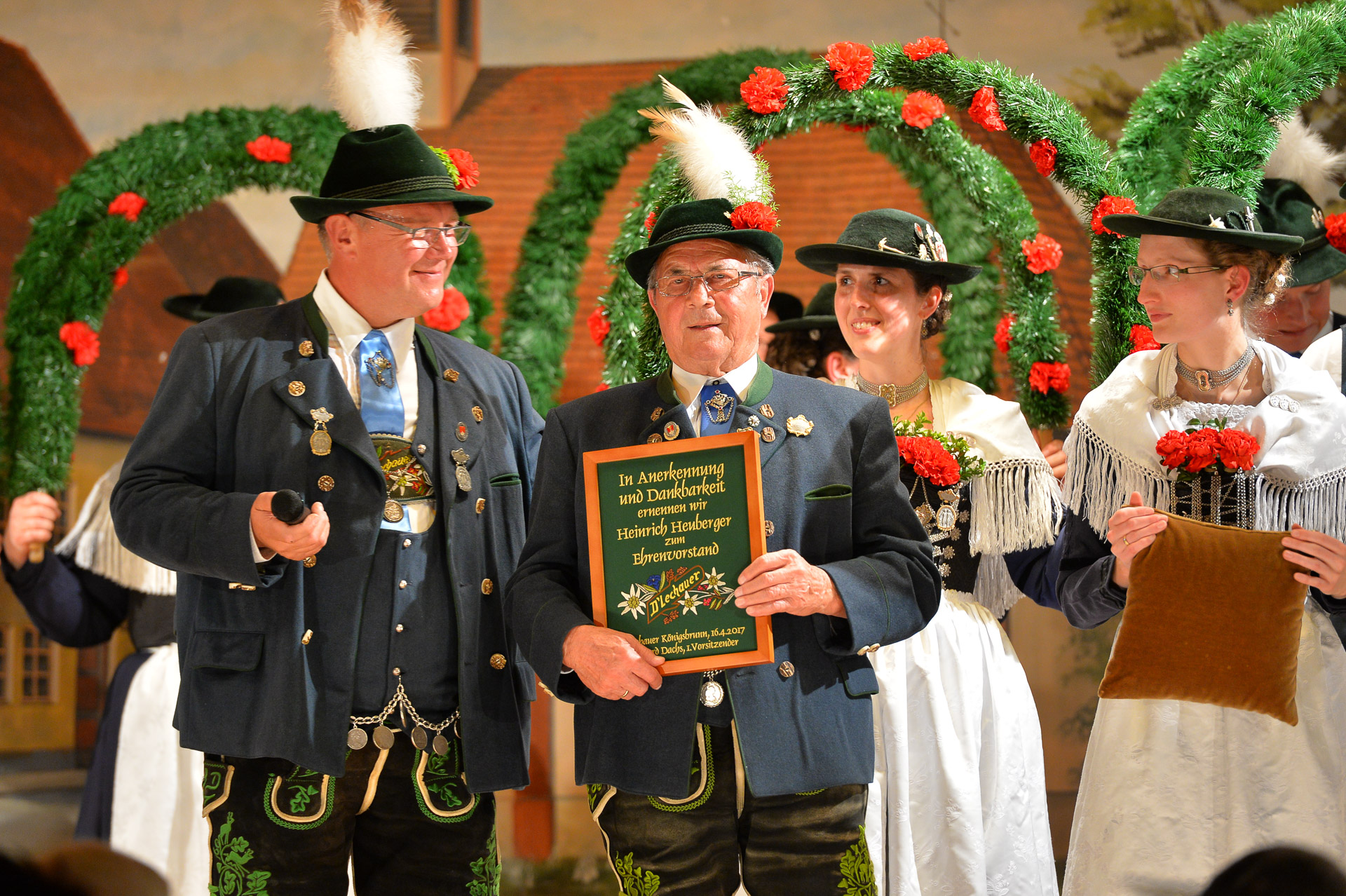 Am Heimatabend am Ostersonntag konnte 1. Vorsitzender Bernhard Dachs Heinrich Heuberger zum Ehrenvorstand ernennen. Der große Heimatabend der Königsbrunner Trachtler bot einen würdigen und passenden Rahmen für solch eine besondere Ehrung.
