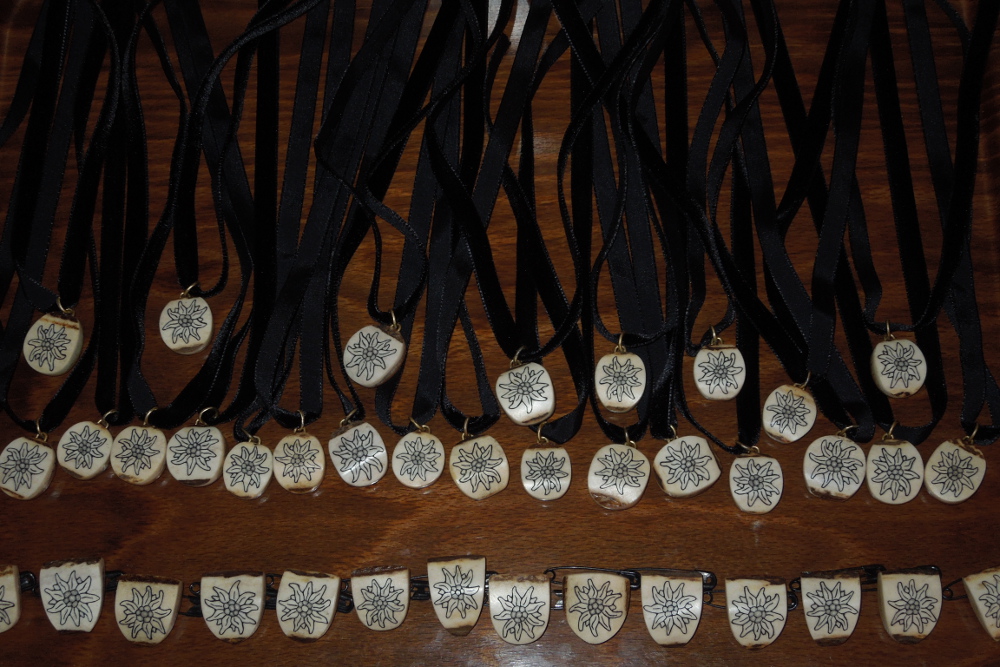 Als Erinnerungsgeschenk erhielten in diesem Jahr die Deandl Samtbänder mit Anhänger und die Buam Anstecker für den Hut auf denen ein Edelweiß ist (siehe Bild). Bezirksjugendleiterin Erika Schneider, die durch den Nachmittag führte, bedankte sich recht herzlich beim Trachtenverein Königsbrunn für das Ausrichten der Veranstaltung und bei allen die zur Durchführung und zum Gelingen beigetragen haben.