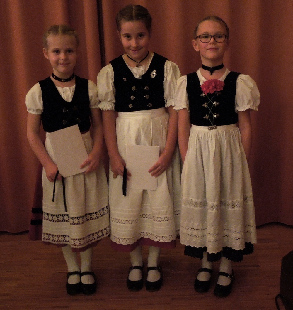 Altersklasse Deandl III: 1. Platz Lea-Sofie Oppenländer, 2. Platz Janina Lindner, 3. Platz Klara Königsberger