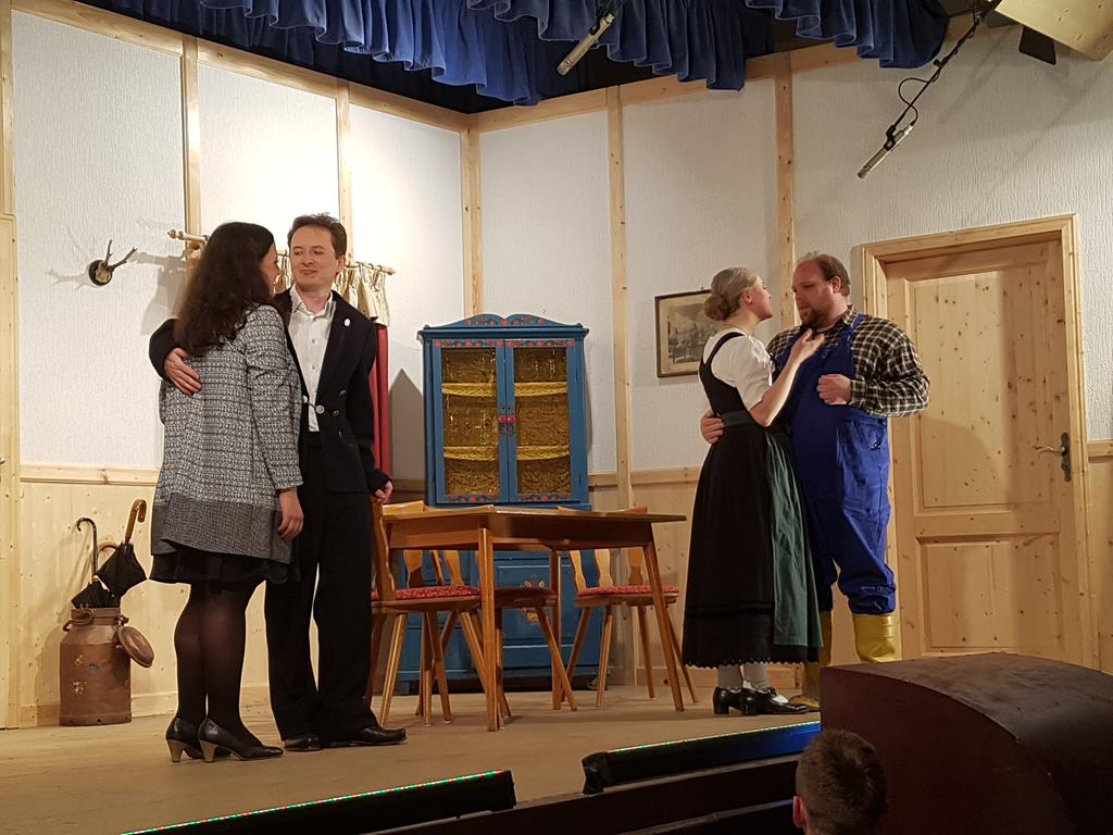 Mit dem Einakter "Die falsche Mariandl" erfreute die sehr "schlagfertige'' Theatergruppe die Besucher. Die Akteure bedankten sich bei Theaterleiter Florian Schrader.