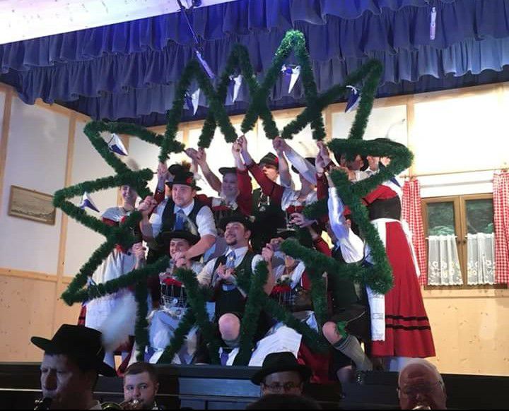 Augenscheinlich ist auch die gute Beziehung zum Patenverein Gersthofen, welcher mit einer großen Abordnung anwesend war und beim Schlussplattler mit viel Freude mit dabei war.