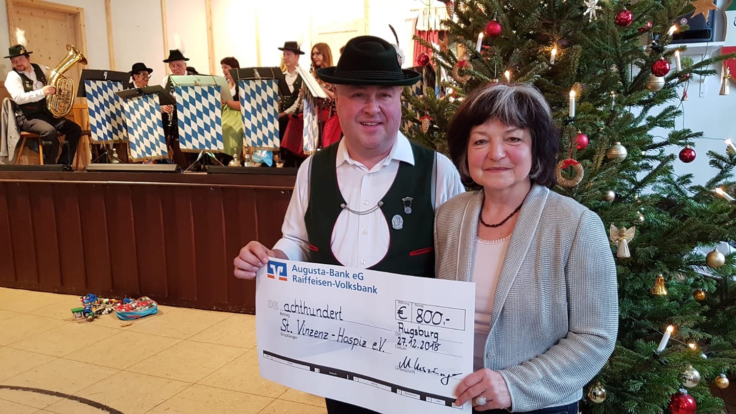 "Treu dem guten alten Brauch" ist der Leitspruch der Trachtler. Seit 1980 ist es im Trachtenverein Lechhausen der Brauch, dass alle 2 Jahre ein Adventsingen in der Pfarrkirche St. Pankratius durchführt wird. Die Spendenerlöse wurden immer einem guten Zweck zugeführt. Auch 2018 fand, ganz dem Brauch, diese besinnliche Stunde statt. Beim diesjährigen Dreikönigsfrühschoppen des Trachtenvereins konnte Vorstand Rudi Ohnemus Spenden in Höhe von 800 Euro an Frau Karin Vlcek vom St. Vinzenz Hospiz Augsburg übergeben. "Nicht dem Leben mehr Tage, sondern den Tagen mehr Leben geben". Wir bedanken uns bei allen unseren Mitwirkenden, die auf jegliche Gage verzichtet haben und bei unseren Besuchern für die Unterstützung.