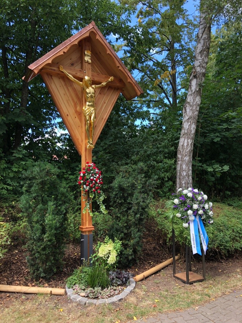 Früher diente ein Feldkreuz als Rastpunkt zum Beten für Gläubige auf Reisen und wird von den folgenden Generationen gepflegt und erhalten. Nachdem unser erstmalig 1989 aufgestelltes Feldkreuz schon sehr in die Jahre gekommen war, wurde dies in liebevoller Handarbeit erneuert und anlässlich unseres 100-jährigen Vereinsjubiläums auch gesegnet.