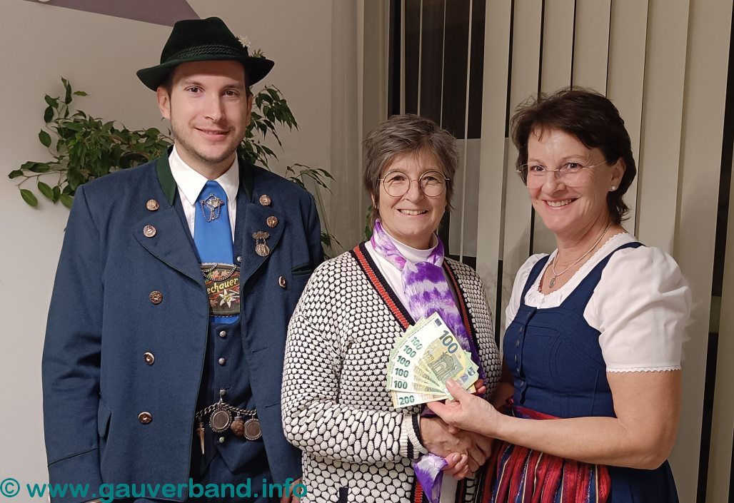 Mit großer Freude konnten Volksmusikwartin Gabriele Straßner und deren Sohn Daniel in diesem Jahr 700 € an Frau Dr. Sigrid Pforr, Vorsitzende des Hospizverein Christrose übergeben.