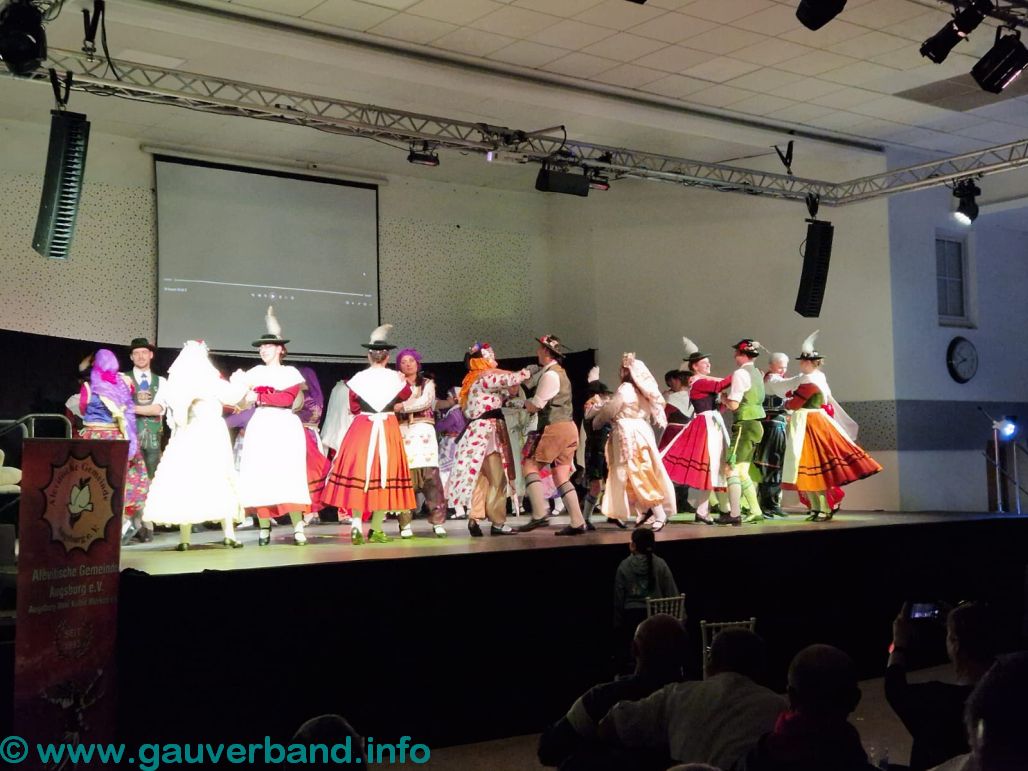 Wir lernen, dass es ca. 200 Grundschritte gibt, die zu einer Choreografie zusammengesetzt werden können. Wir lernen 3 davon, und es ist eine Herausforderung. Aber auch die Aleviten begeben sich auf fremdes Terrain und lernen Polka. Die gemeinsamen Proben machen extrem viel Spaß und auch Sprachbarrieren werden gemeistert. Dann kommt der große Tag. Die Trachtenkapelle Lechhausen empfängt die Gäste mit bayrischer Blasmusik. Die Begrüßung übernehmen die Vorstände beider Vereine – Toni Kürzinger lernt dafür extra einen Satz auf Türkisch. Wir haben unsere Geschichte seit 1905 in ein kleines Märchen verpackt. Unsere Alevitischen Freunde bringen ihre Geschichte von der Anwerbung als Gastarbeiter, über die Ankunft in Augsburg, bis hin zum Familiennachzug in einem beeindruckenden Musical auf die Bühne an dessen Ende der bayrische Bua der türkischen Frau behilflich ist. Gemeinsam tanzen wir in unterschiedlichen Trachten die „Sternpolka“. Um die Integration darzustellen, füllt sich beim „Fröhlichen Kreis“ in jeder Runde die Tanzfläche mehr und es stehen 50 Aktive für die Darbietung der türkischen Tänze bereit.
