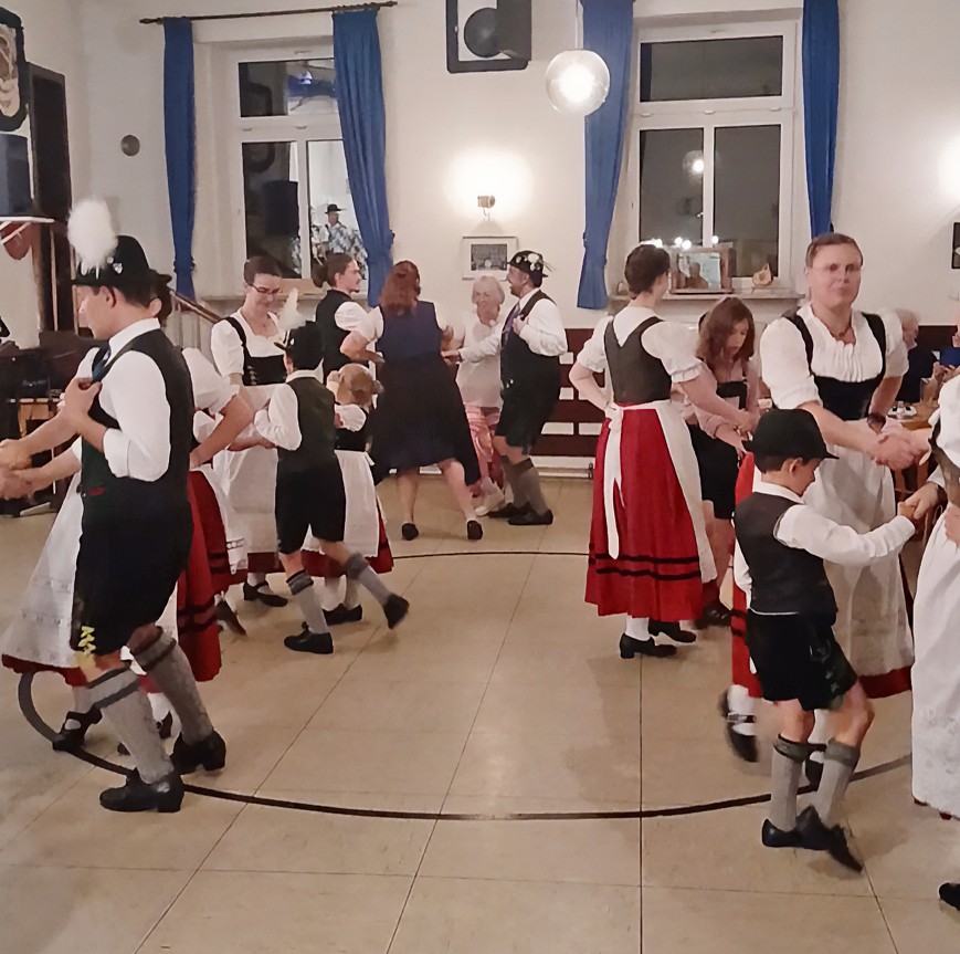 Wie es bei einem Hoigarten Tradition ist, durften auch die Aufführungen der Besucher nicht fehlen. Die Teilnehmer waren eingeladen, ihr Können zu zeigen, was zu vielen fröhlichen Momenten und herzlichen Begegnungen führte. Sehr gefreut hat uns der Besuch des „Auerbergler Holzklang“, der nicht nur zur Adventszeit, sondern auch das ganze Jahr über mit seiner Musik begeistert. Ein weiterer Höhepunkt des Abends war der Besuch des Trachtenverbandes Thüringen. Auf dem Weg zum Wiesnumzug 2025 legten sie in Augsburg einen Zwischenstopp ein. Die Thüringer waren begeistert von der Stadtführung sowie von den vielseitigen Einlagen und dem herzlichen Empfang im Rahmen unseres Hoigarten. Der Austausch und die Begegnungen zwischen den Trachtengruppen bereicherten das Event und stärkten die kameradschaftlichen Bande über die Landesgrenzen hinaus.