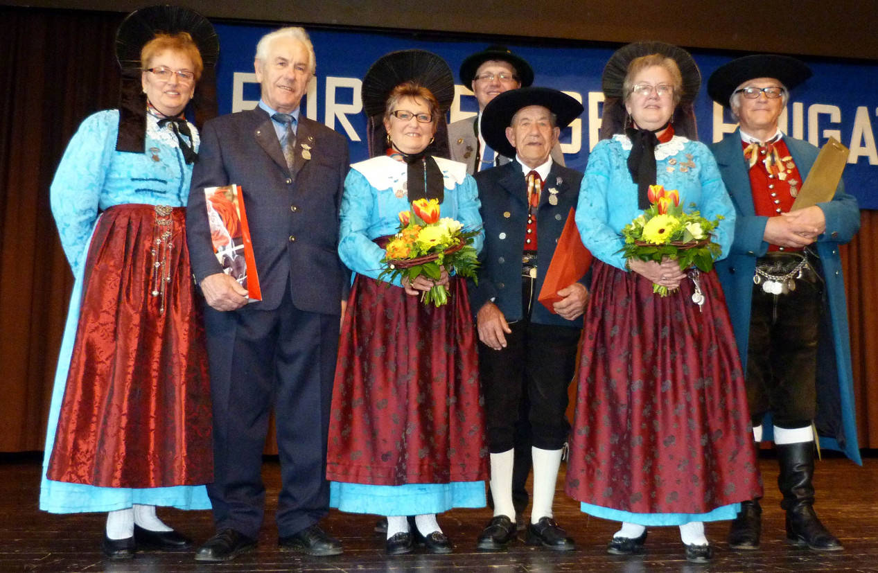 Von Links: Müller Renate 2. Vorsitzende, Mersch Martin; Sclaier Edda; Wölfl Adam; Müller Brigitte; Müller Horst 1. Vorsizender und im Hintergrund Bader Karl Bezirkleiter Bezirk Burgau