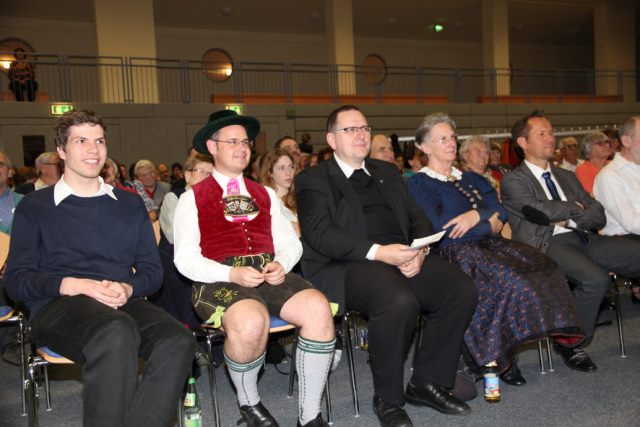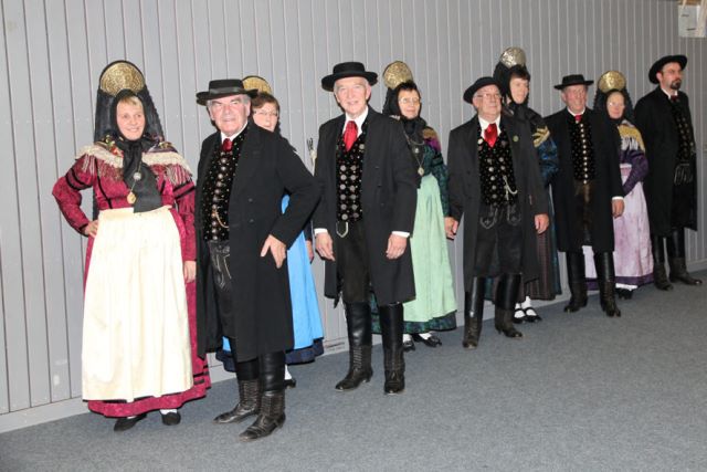 Die Plattler wurden durch Kaplan Wolfgang Schnabel verstärkt, einem gebürtigen Schongauer, der auch den Kontakt zu den Schloßberglern hergestellt hat. 2. Vorstand Karl Hillenmeyer (im Bild links vorne) führte mit "Selbstgereimtem" zum Thema "Miteinander" gekonnt durch das Programm.
