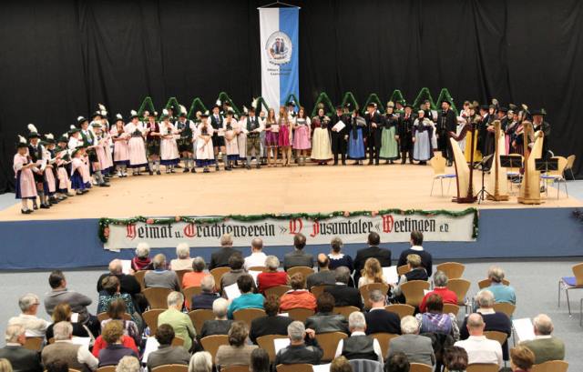 Die "Zusamtaler" aus Wertingen hatten zum Heimatabend eingeladen. Zur Verstärkung ihrer Aktiven holten sie sich die "Schmuttertaler" aus Gablingen sowie die "Schloßbergler" aus Schongau. Die musikalische Gestaltung übernahmen die Stadtkapelle Wertingen und das Harfentrio der Musikschule Wertingen.