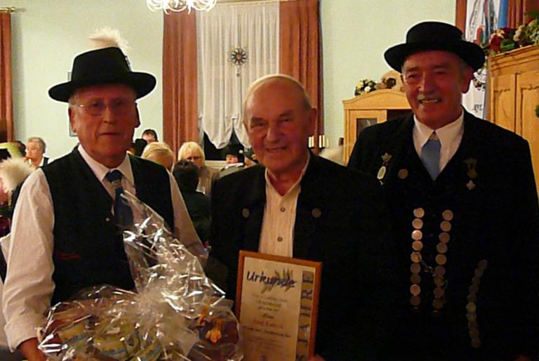 Natürlich gab es auch verschiedene Ehrungen für langjährige Mitglieder des Trachtenvereins Gundelfingen. U.a. wurde Josef Kränzle für 65-jährige Mitgliedschaft mit einem kleinen Präsentkorb bedacht.