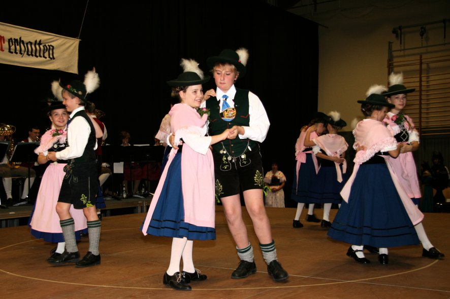 Mit der Münchner Polka eröffnete die Jugendgruppe des Vereins den Reigen der Tänze und Plattler. Die sieben jungen Paare erhielten für ihre bezaubernden Darbietungen im Laufe des Abends wiederholt großen Applaus.