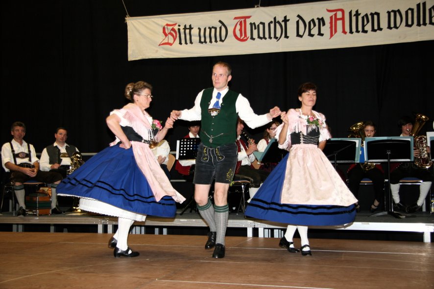 Auch im zweiten Teil des Programms wurden wieder zahlreiche Musikstücke, Tänze und Plattler geboten. Krönender Abschluss in diesem Jahr war der von der Gebirgstracht dargebrachte Drei Steirer. In dem Tanz werden jeweils von zwei Madln und einem Buben das Werben um das schöne Geschlecht dargestellt. Einige Proben waren notwendig, um die 30 Einzelfiguren des Tanzes einzustudieren. Entsprechend groß war die Erleichterung bei den Akteuren nach der fehlerfreien Darbietung des Tanzes.