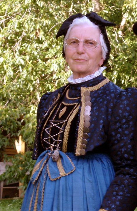 Jahrzehntelang setzte sie sich für die Heimatpflege und das Brauchtum ein. Gemeinsam mit ihrem allzu früh verstorbenen Ehemann Franz, Ehrenmitglied und Heimatpfleger unseres Vereins, erforschte sie anhand historischer Fotografien das Altscheuringer Gwand, das dann in akribischer Kleinarbeit zusammen mit unserer damaligen Trachtenschneiderin Anni Magg originalgetreu nachgeschneidert wurde und seitdem stolzer Bestandteil unserer Vereinskultur ist. Die Hochachtung über dieses geschaffene Kunstwerk ist auch nach über 25 Jahren noch ungebrochen vorhanden. Nicht zu vergessen ist auch die Heimatstube, die auf Initiative des Ehepaars eingerichtet wurde.