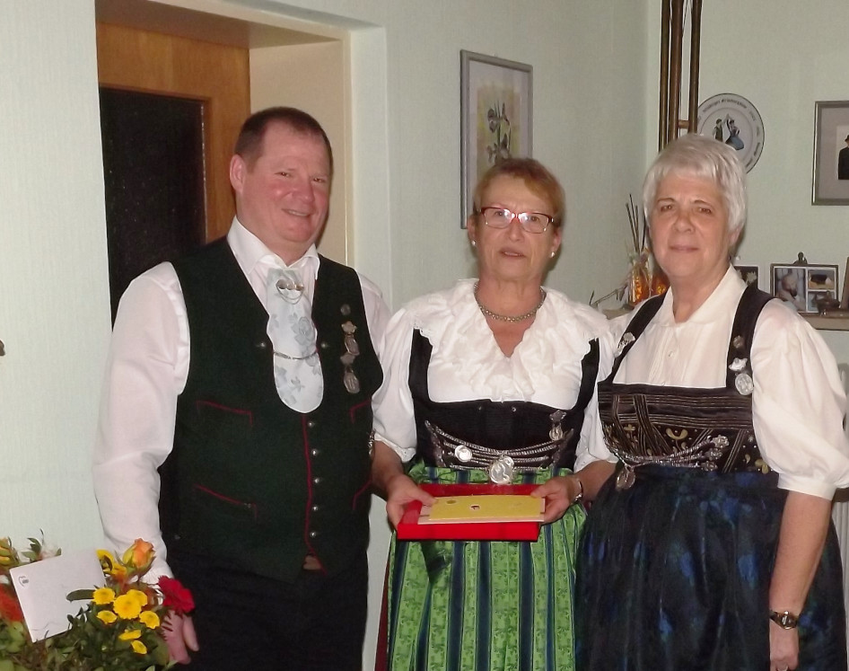 So besucht sie mit ihrer 1. Vorsitzenden Monika Heinsch ,Vereinsmitglieder des Trachtenvereins Friedberg, die ein Jubiläum feiern.