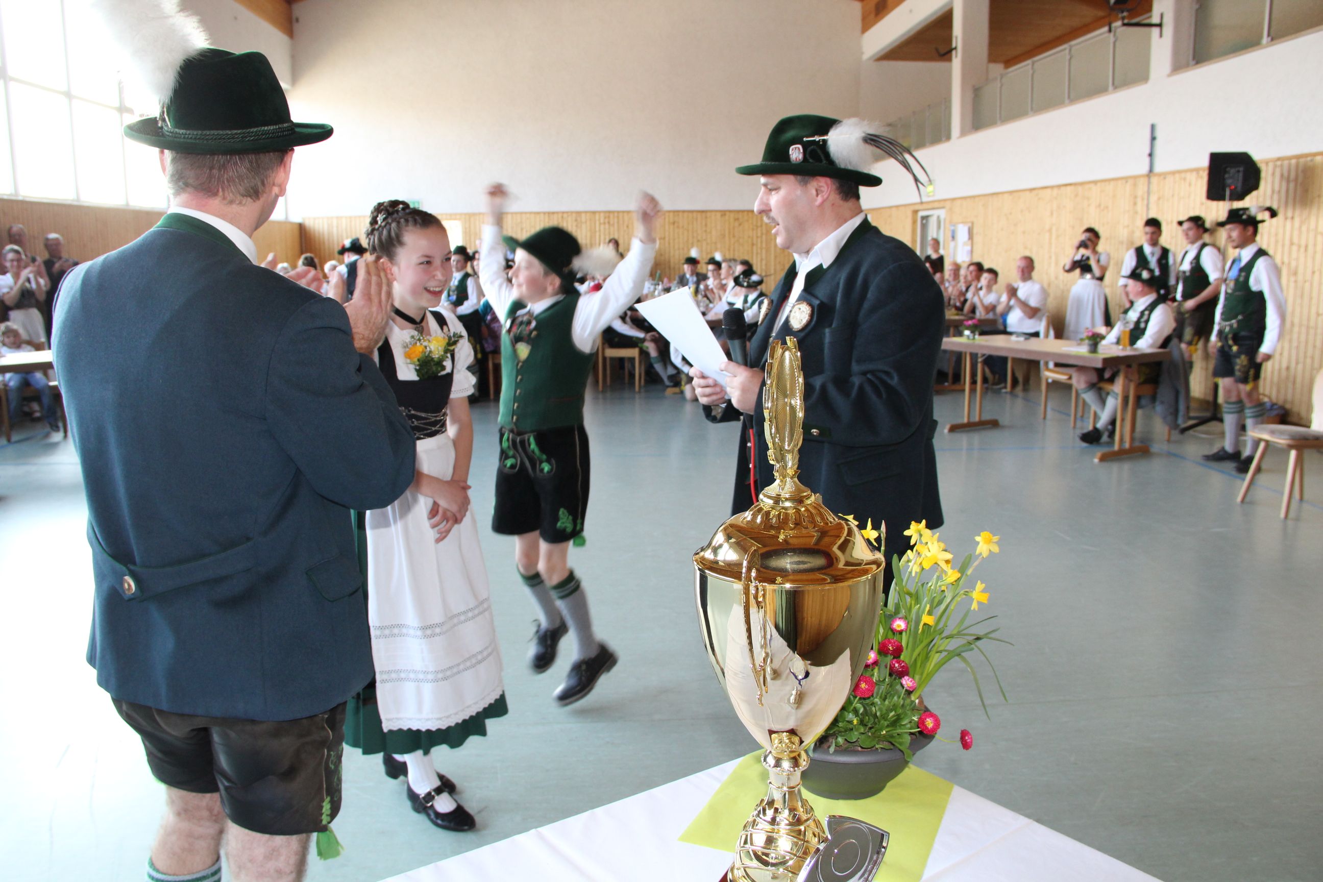 Tosender Jubel und Freudensprünge gabs, als der Trachtenverein Scheuring den begehrten Wanderpokal erhielt. Den 2. Platz belegte der Verein Almarausch Mering.