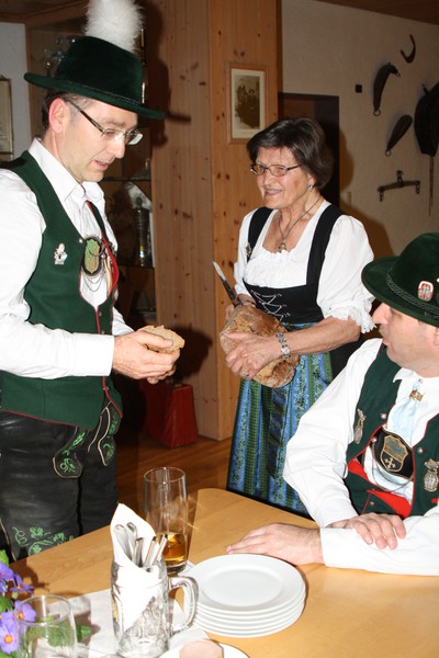 Das Totengedenken gehört zu der Tagesordnung, wie nach der Bezirksversammlung das Anschneiden den Hoagartn Brotes, das von Resi Seiler aus Scheuring mit dem Brotspruch vollzogen wurde.