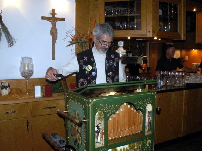 Die weiteste Anreise hatte ein langjähriger Freund der Friedberger Trachtler Jacques Morel aus Frankreich, der mit seiner Drehorgel die Gäste empfing.