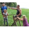 Auch durfte das jährliche Holzsägen und Baumstammnageln natürlich nicht fehlen. Um so größer war die Freude bei der Trachtlerjugend, als Einige, einschließlich des Vorstands, mit einer Wasserdusche überrascht wurden.