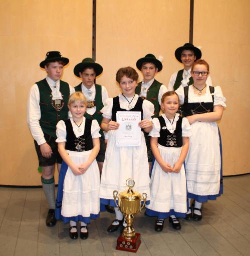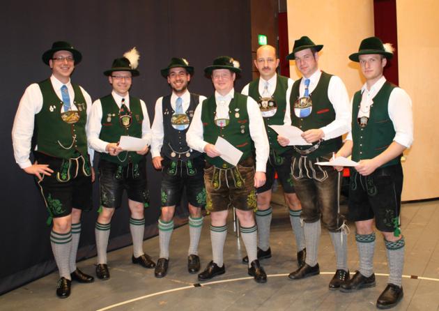Die Werter v.li.: Musiker Rainer Steinhart, Partaler Merching, Reinhard Steber, Scheuring, 1. Gauvorplattler Johannes Schafert, Rudi Kopp, Friedberg, Alexander Dosch, Kissing, Stefan Brunnhuber, Mering, Michael Rohrmair, Bayermünching Merching