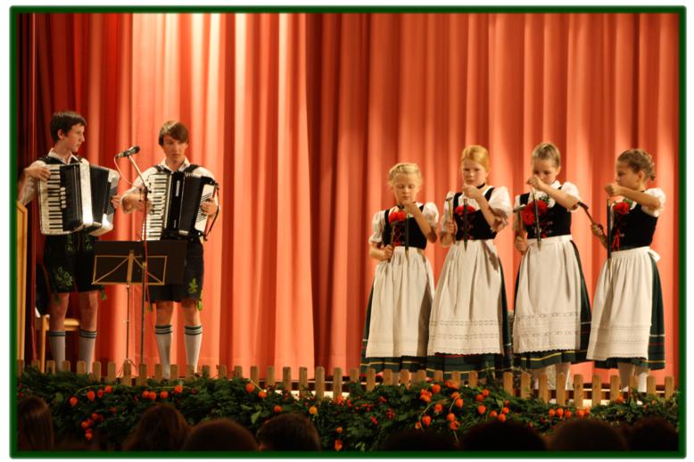 Dass schon der Kleinste mit 5 Jahren einen Schuhplattler ohne jegliche Aufregung auf der Bühne präsentiert und somit so manchem langjährigen Trachtler „in die Schuhe hilft“ war schon mehr als erstaunlich. Auch sonst begann der Abend mit den groß(artig)en Kleinen.