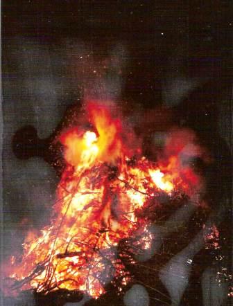An manchen Orten wird das Osterfeuer als Judasfeuer, "Judasbrennen" bezeichnet, wobei vor allem früher auch eine Strohpuppe mit verbrannt wurde. Sie sollte den Verräter Judas bedeuten. Bereits während dieser Feuerweihe fand hier und da eine Judasverbrennung statt, und man maß dem Judasfeuer zauberische Kräfte bei. Nach einer heiligen Andachtsfeier aber hob das Johlen und Schreien an: Der Jaudes brennt, der Jaudes, der Jaudes!"