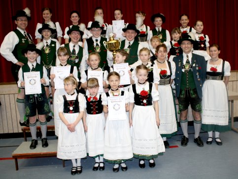 Zum Gruppenplattler traten die Vereine Bayermünching Merching und Scheuring an. Den 1. Platz belegte der Verein aus Scheuring. So nahmen diese den Wanderpokal, der vom Landrat aus Landsberg am Lech, Walter Eichner, gestiftet wurde, mit nachhause.