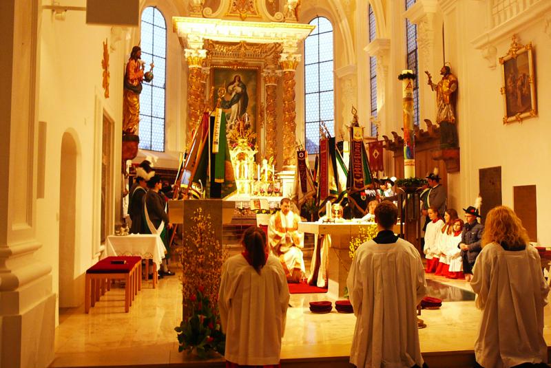 Die Vereinsgründung von 90 Jahren nahm der Heimat- und Volkstrachtenverein Türkheim zum Anlass, gemeinsam mit den Paten- und Ortsvereinen zu feiern. Ein kleiner Festzug formierte sich vom Schloßplatz zur Kirche, wo Pfarrer Bernhard Hesse gemeinsam mit Kaplan Martin Skalitzky und Diakon Gerhard Hummel den Festgottesdienst zelebrierte.