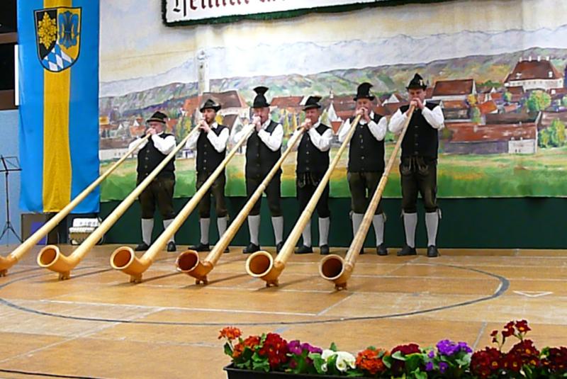 Musikalische Farbtupfer im Unterallgäu sind die Alphornbläser Markt Rettenbach, wie immer verstärkt durch Landrat a.D. Hermann Haisch.
