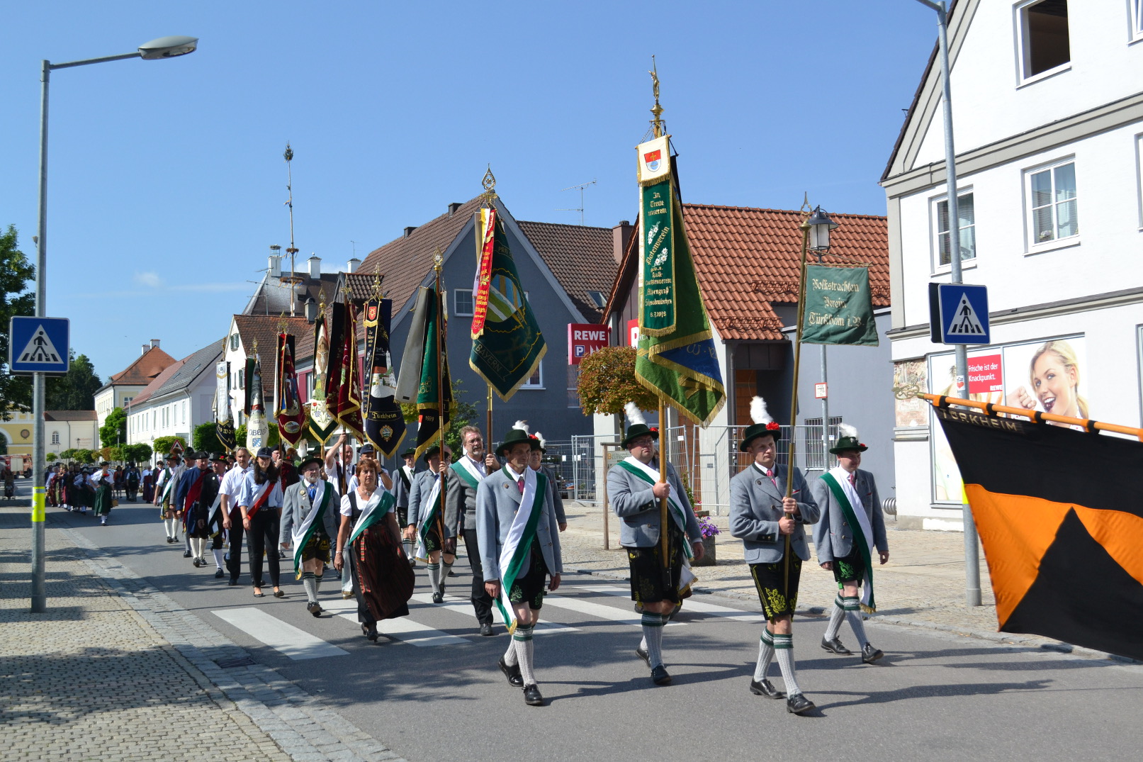Auch der kirchliche Segen durfte nicht fehlen. Am 10. Juni feierte der Verein seinen Jubiläumsgottesdienst in der Pfarrkirche Maria Himmelfahrt. Im Schlosshof formierte sich der Kirchenzug aller Fahnenabordnungen der lokalen Türkheimer Vereine, sowie der angeschlossenen Bezirksvereine der Trachtler. Musikalisch begleitet wurde der Festgottesdienst vom Orchesterverein Türkheim sowie Organistin Elisabeth Seitz. Kaplan Thomas Ruf hob in seiner Predigt besonders die Traditionen hervor ohne die weder die Kirche noch die Vereine funktionieren würden.