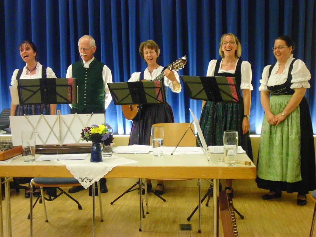 Es wurde an diesem Abend sehr viel gelacht und gesungen sowie der Leib und die Seele verwöhnt. Das Programm aus Hausmusik, Gedichten, Gesängen und Gstanzln erfreute alle Anwesenden. Die Wertachtaler Sänger und Stubenmusi aus Ettringen, das Duo Luise und Agnes Miller aus Haunstetten boten beste Volksmusik sowie Geschichten. Auch das Ottobeurer Glockenspiel, das mit Liedern wie beispielsweise “Amazing Grace” internationale Titel geschickt arrangierte, so dass auch diese Lieder in die schwäbische Volksmusik passten.