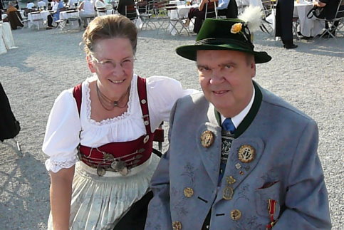 Man sah an diesem Abend aber auch den Unterschied zwischen Tracht und Dirndl. Viele bewundernde Blicke zogen die Gauvorstände Rudi Dietz, Gerhard Hinterbrandner, der Vorsitzende der Bayerischen Trachtenjugend Günther Frey, der Vorstand des Heimat- und Volkstrachtenvereins Weilheim Michael Greif sowie die beiden Vorstandsmitglieder Otto Dufter und Bernd Walter jeweils mit ihren Begleitungen, auf sich. Es war ein unwahrscheinlich schönes Ambiente in dieser Nachbildung von Versailles, der laue Sommerabend tat sein Übriges dazu, um diesen Abend für alle Teilnehmer zu einem besonderen Erlebnis zu machen.