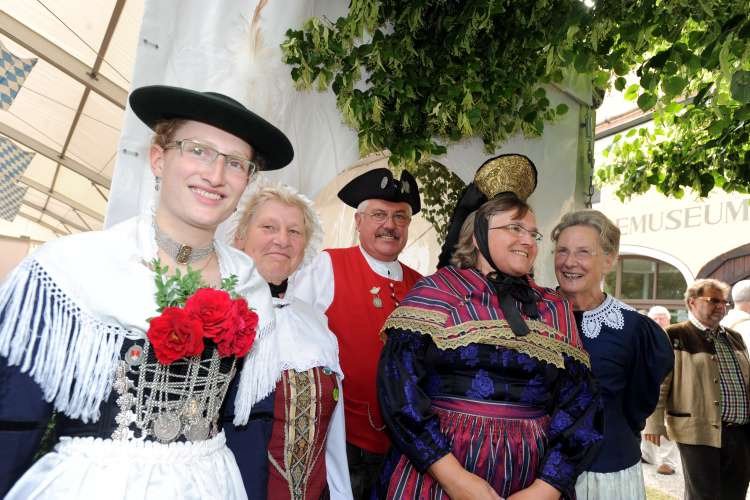 Landrat Martin Sailer hatte zum 40-jährigen Gründungsfest des Landkreises Augsburg eingeladen, darunter auch einige Trachtenpaare aus dem Landkreis. Die Festversammlung war hochkarätig besetzt mit Personen des öffentlichen Lebens. Marianne Hinterbrandner nutzte diese Gelegenheit, anlässlich der Trachtenvorstellung der Paare aus Königsbrunn, Lechfeld und Gablingen, die Anwesenden auf die Trachtenvereine im Landkreis aufmerksam zu machen und bat um Unterstützung der Vereine, nicht nur finanziell sondern vor allem auch ideell. Die Vielfalt der Trachten und die besondere Schönheit verblüffte Viele und brachte Trachtler und Politiker ins Gespräch. Als kleines Geburtstagsgeschenk für den Landkreis überreichte Gauvorstand Marianne Hinterbrandner an Landrat Martin Sailer die „Trachtenlandschaft Bayern“.