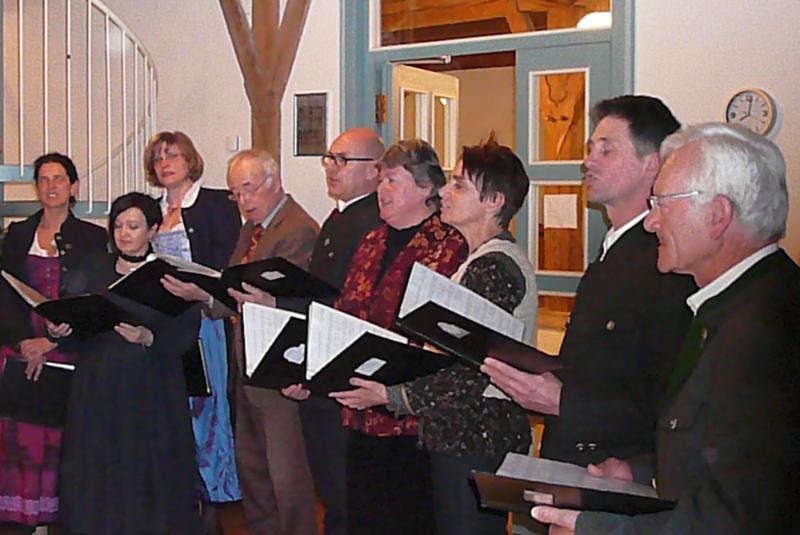 Auch der Kirchenchor in kleiner Besetzung mit ihrem Chorleiter Franz Eimannsberger trugen mit ihren Mundartliedern und einem Liebeslied von Brahms zum Gelingen des Abends bei.