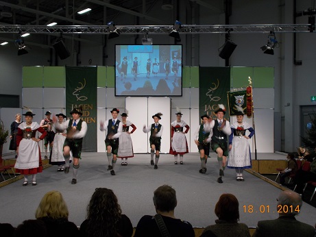 Die Messe entwickelt sich zu einem Publikumsmagnet. Vor allem Vormittags und um die Mittagszeit drängten sich die Zuschauer durch die Gänge. Die Vorführungen der Gruppe aus dem Bezirk Augsburg (Samstag), der Gaugruppe und der Jugendgaugruppe (Sonntag) fanden großen Zuspruch. Unter der Leitung von Gregor Wiedemann konnten dem Publikum Schuhplattler und Tänze gezeigt werden. Ausserdem gaben er und Gauvorstand Marianne Hinterbrandner Einblick in unser Gau- und Trachtlerleben. Natürlich wurde nicht versäumt, ordentlich Werbung für unsere Veranstaltungen zu machen, sei es Gaufest, sei es die Jugendarbeit oder sonstige Veranstaltungen. Wann hat man schon mal so ein aufmerksames (und teilweise fachkundiges) Publikum.