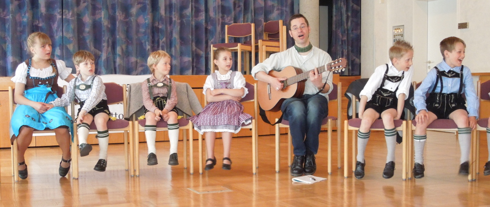 Am Samstag, den 09.05.2015 fand der diesjährige Gaujugendtag im Pfarrheim St. Michael in Ottobeuren statt. Rund 70 Kinder und Jugendliche Trachtler in Begleitung ihrer Jugendleiter/innen und Betreuer/innen waren gekommen. Diesmal hatten die Gaujugendleiterinnen Sabine Wiedemann und Regina Schäble einiges am Ablauf geändert, so wurde zum Beispiel nicht wie gewohnt der ganze Tag in einer Großgruppe verbracht. Am Vormittag stand nach dem Auftanz und einer „Kennenlernrunde“ gemeinsames tanzen auf dem Programm. Bei den verschiedene Volks- bzw. Kindertänze wie der Kikeriki, der Fröhliche Kreis oder der Schwarze Peter wurden die Kinder und Jugendlichen von Musiker Christian Weber mit dem Akkordeon begleitet.