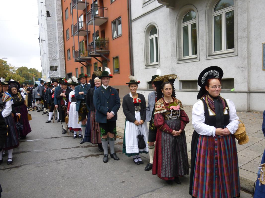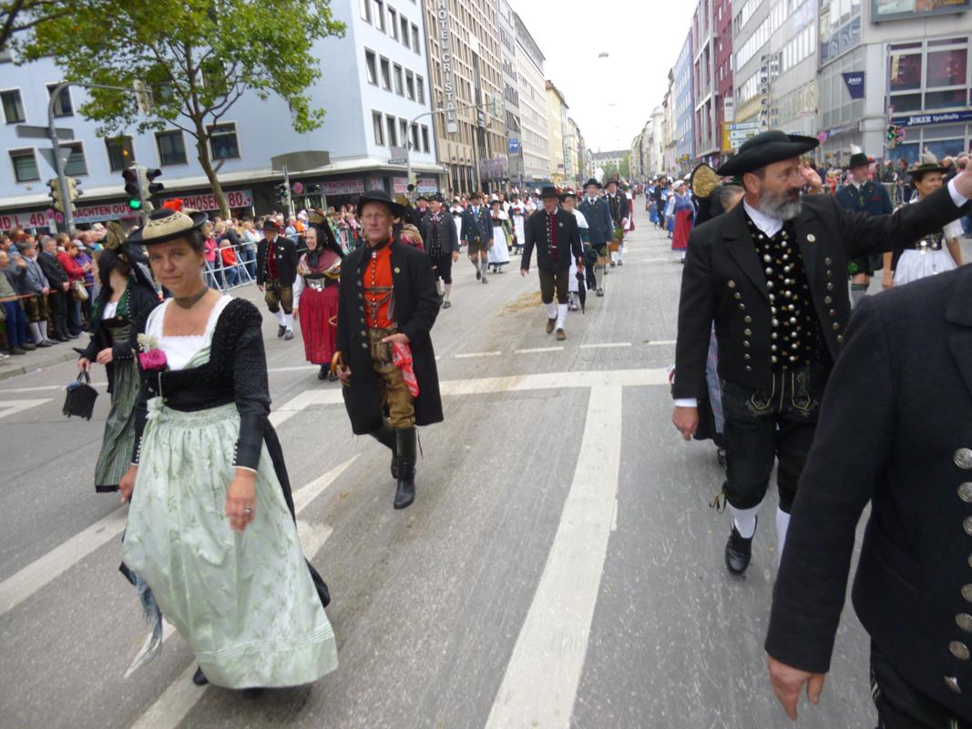 120 Trachtlerinnen- und Trachtler aus dem ganzen Gaugebiet mussten früh aufstehen, um rechtzeitig in München zum großen Trachten- und Schützenzug zu kommen. Es war für Alle ein großes Erlebnis, vor dieser großartigen Kulisse die Trachten zu zeigen. Die Teilnehmer in ihren vielfältigen Trachten erhielten von den Zuschauern, welche dichtgedrängt am Straßenrand standen, viel Beifall. Ein sichtlich erfreuter Kardinal Marx nahm auch den Fahnengruß unseres Standartenträgers Karl Bader entgegen und bedankte sich mit erfreutem Winken.