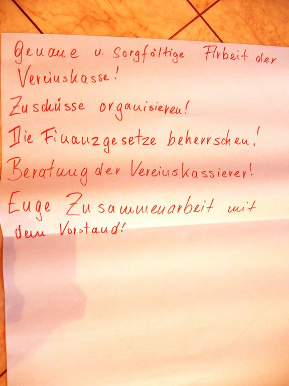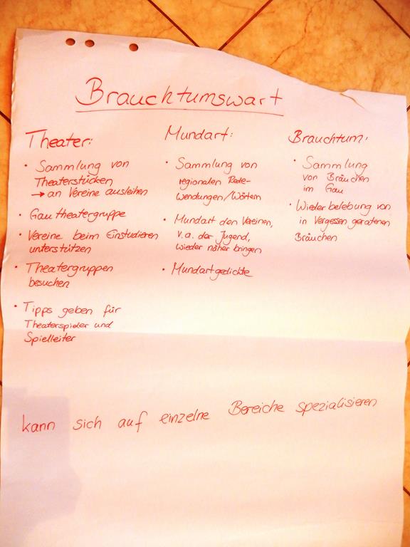 Ergebnisse der Gruppenarbeit über die Erwartungen an Funktionsträgern bei der Schulung in Bliensbach:
