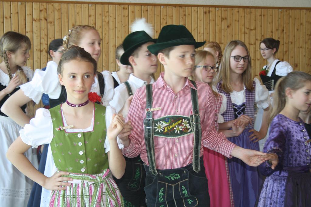 Zu den darauffolgenden Tänzen, egal ob sie bereits aus den Vereinsproben bekannt waren oder erst eingeübt werden mussten, fanden sich stets alle Teilnehmer auf der großen Tanzfläche ein. Die Tanzleiterin Erika verstand es wie immer gekonnt, die anfängliche Scheu der kleineren Kinder abzulegen, indem sie lustige Klatsch- und Singspiele in ihr Programm einbaute.