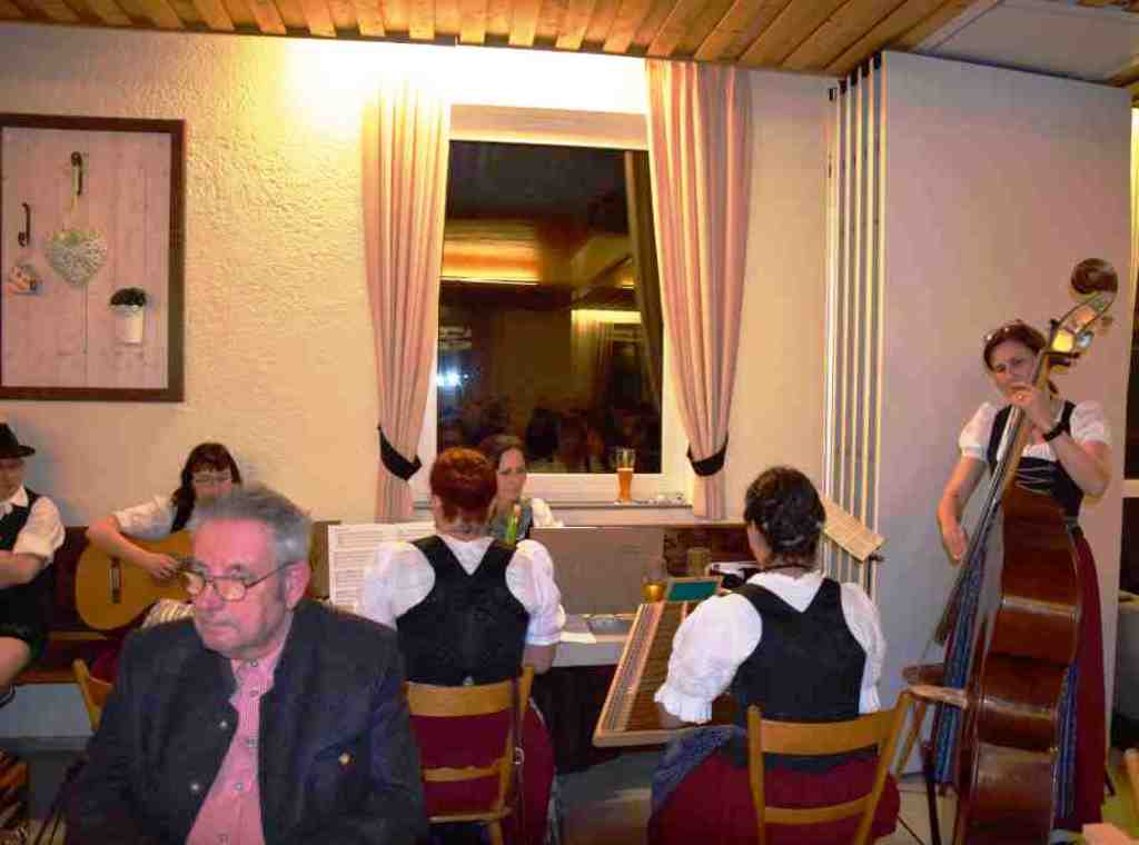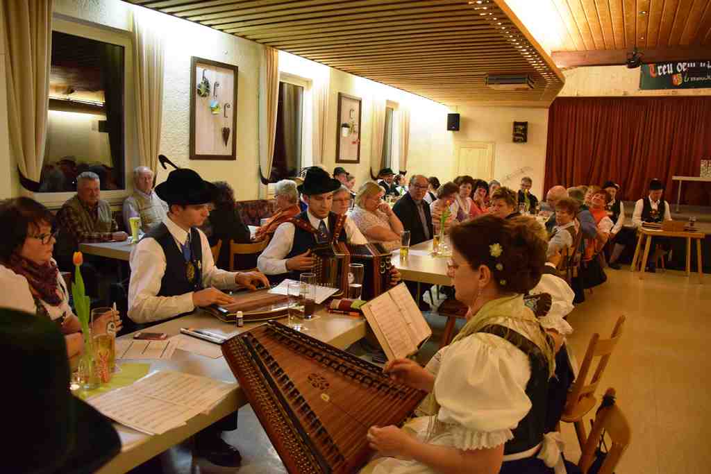 Es war das erste Mal für unsere neue Gauvolksmusikwartin Gabi Straßner als Verantwortliche. Mit exakter Vorarbeit und viel Wissen um die Volksmusik und unsere Volksmusikgruppen – schließlich ist sie als aktive Volksmusikantin seit 46 Jahren mit dabei – hat sie die Veranstaltung vorbereitet und führte wie ein alter Routinier durch das Programm. Lediglich am Anfang, als sie sich und ihre Gruppe vorstellte, untertrieb sie maßlos: „Ich bin Musikantin und freue mich, dass mich meine Buben mitspielen lassen“. Im Lauf des Abends bewies sie natürlich, dass sie eine exzellente Hackbrettspielerin ist und auch an der Gitarre als Begleitung für das Ziachduo Stefan Brunnhuber und Daniel Straßner ihren Teil zu den schwungvollen und begeisternden Stückln beitrug.