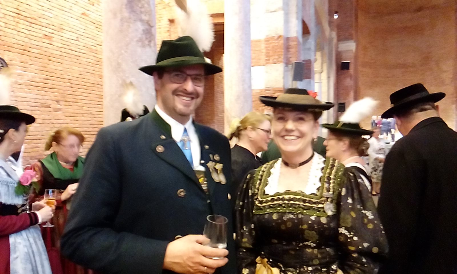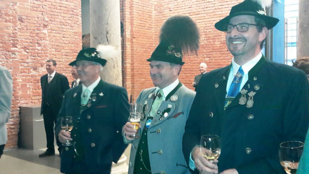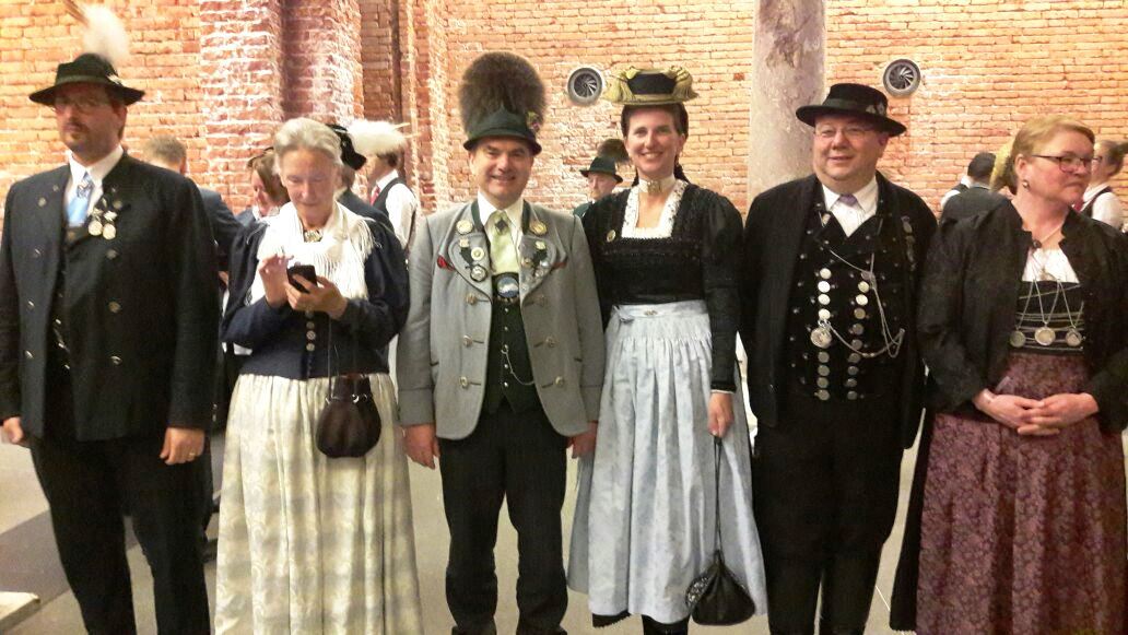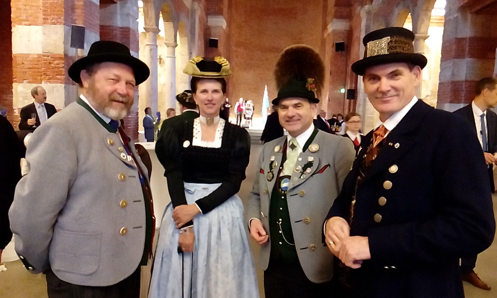 Gemeinsam mit unserem Göd Georg Westner und Annemarie Lackerschmied aus dem Chiemgau sowie Gauvorstand Rudi Dietz vom Donaugau warten wir auf Bundespräsident Steinmeier. Marianne Hinterbrandner nutzt die Wartezeit noch schnell für eine erste Information im Internet.