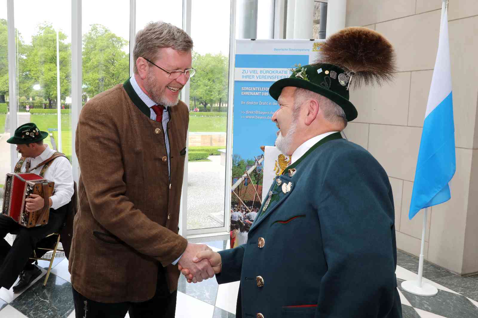 München/Bayern (hö) – Die hohe Wertschätzung des Ehrenamtes durch die Bayerische Staatsregierung kommt mit der Herausgabe eines eigenen Leitfadens zum Ausdruck. Der Leitfaden für das Ehrenamt wurde vor zwei Jahren bei den Kulturtagen in Töging am Inn angeregt und seither durch „Runde Tische“ in der Bayerischen Staatskanzlei diskutiert und vorbereitet. Bei der nunmehrigen Präsentation der gedruckten Hilfe für Vorstände, Festleiter und Behörden dankte im Rahmen eines Maibaumaufstellens Staatskanzlei-Chef Marcel Huber den Trachtlern und weiteren Vereinen, die sich der Brauchtumspflege und dem Ehrenamt verschrieben haben, für deren Leistungen. Max Bertl als Landesvorsitzender des Bayerischen Trachtenverbandes seinerseits dankte dem Staatsminister für dessen Dialog mit den Verbänden, für die Erstellung des Leitfadens und für die zusätzliche Einrichtung eines Sorgentelefons in der Bayerischen Staatskanzlei für Fragen zum Ehrenamt. „Mit diesem Leitfaden halten nunmehr die Vereine, Landratsämter, Ordnungsämter und Kommunen in ganz Bayern die gleichen Richtlinien in Händen, das erhöht sicherlich die Sensibilisierung der Verwaltungen für die Anliegen und Belange des Ehrenamtes“ – so Max Bertl, der noch daran erinnerte, dass in Bayern über vier Millionen Bürgerinnen und Bürger ehrenamtlich rund 700 Millionen Arbeitsstunden im Wert von rund sechs Milliarden Euro leisten“.