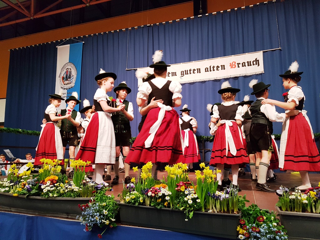 Ein kurzer Blick auf die Bühne und jeder im Saal wußte, warum es gerade die Beiden waren, die für ihre Leistung geehrt wurden. Die Bühne war fast zu klein für die vielen Kinder und Jugendlichen, die hier ihren Tanz zeigten. Dass dies nicht von ungefähr kommt, sondern langjährige beharrliche Arbeit von engagierten Persönlichkeiten dahintersteckt veranschaulichte Gauvorstand Marianne Hinterbrandner in ihrer Laudatio.