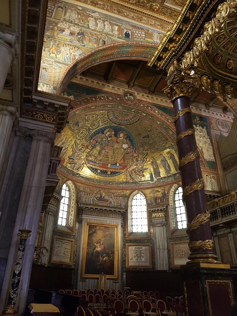 Nachdem wir so früh angekommen waren, bot sich ein erster Besichtigungspunkt an und wir fuhren zur Kirche Santa Maria Maggiore, eine der Hauptkirchen von Rom. Wir waren beeindruckt von der Pracht und der Größe der römischen Kirchen, vor allem aber auch, weil wir wussten, dass uns mit dem Petersdom noch größere Dimensionen erwarten.