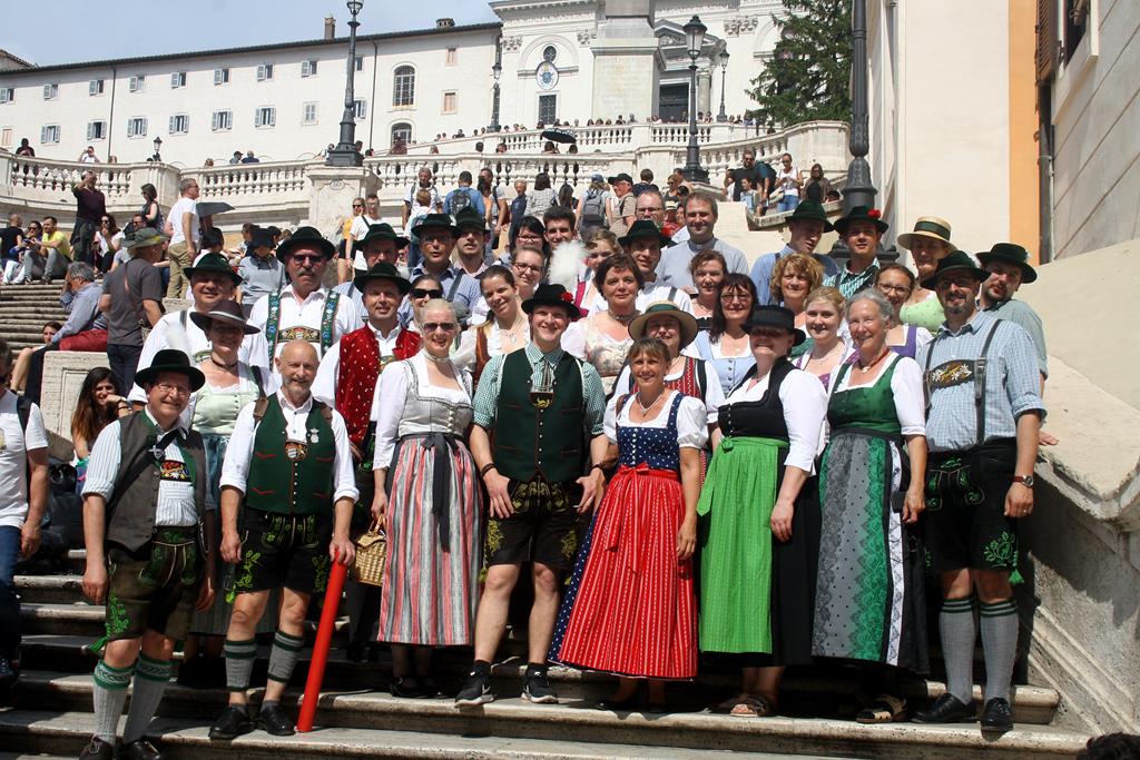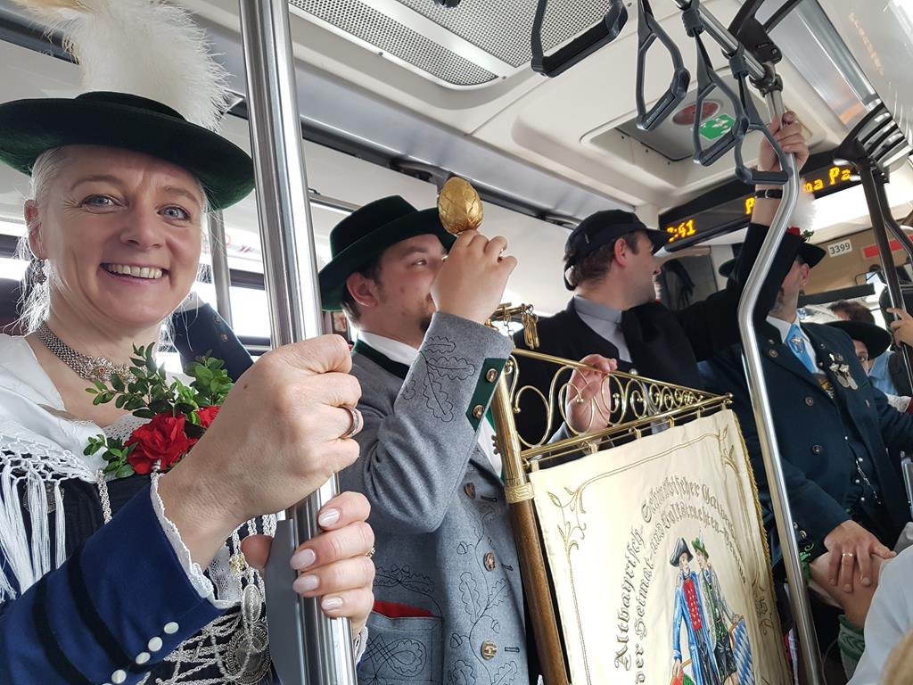 Und so saßen am Vatertag Abend Trachtlerinnen und Trachtler aus Vöhringen, Gersthofen, Lechhausen, Königsbrunn, Mering, Scheuring und Schwabmünchen, dazu Gäste aus dem Huosigau im Bus der Firma Bottenschein zur Fahrt nach Rom.