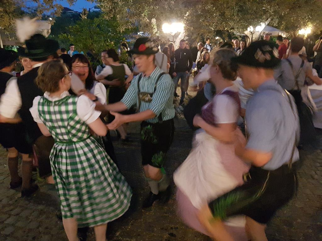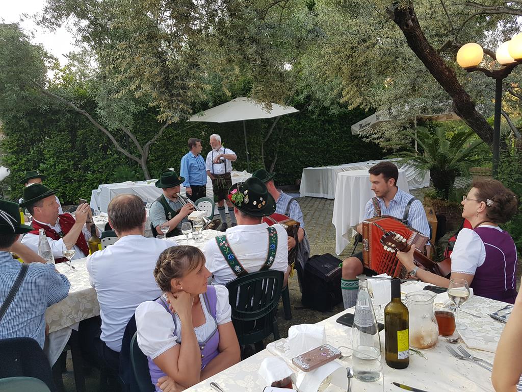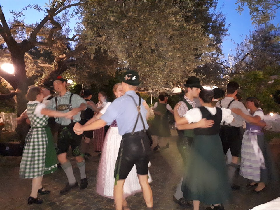 Wir freuten uns schon auf den gemeinsamen Abend mit den anderen Gruppen. Unter blühenden Olivenbäumen genossen wir italienisches Essen und schnell war mit Musik und Tanz Verbindung geschaffen.