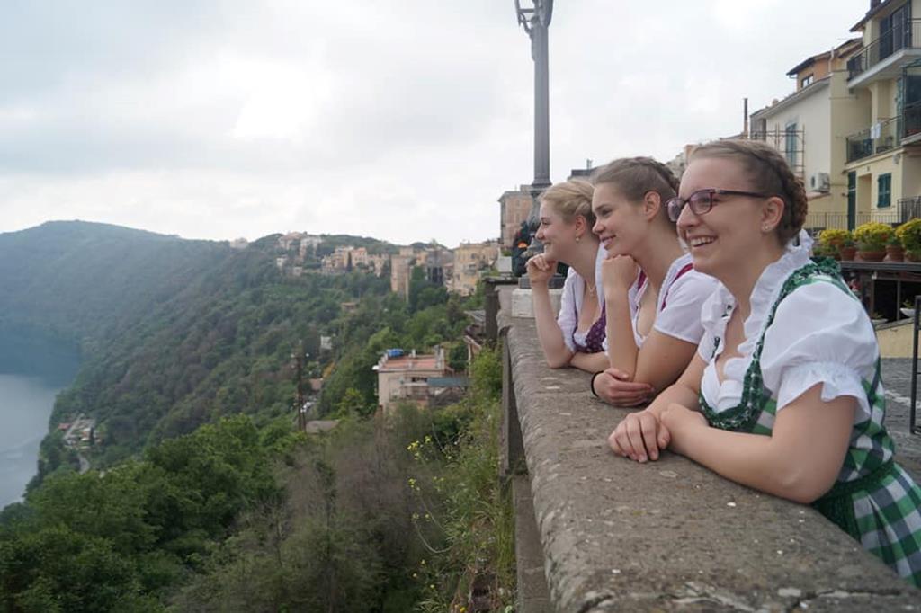 Der Samstag stand ganz im Zeichen von Besichtigungen. Bereits am Morgen traf man sich zur Fahrt nach Castel Gandolfo, der Sommerresidenz der Päpste. Die frühe Uhrzeit ermöglichte ein unbeschwertes Flanieren durch kleine Gassen und Blicke auf den Albaner See. Die Möglichkeit, die Räumlichkeiten der vatikanischen Residenz zu besichtigen wurden von Allen gerne genutzt.