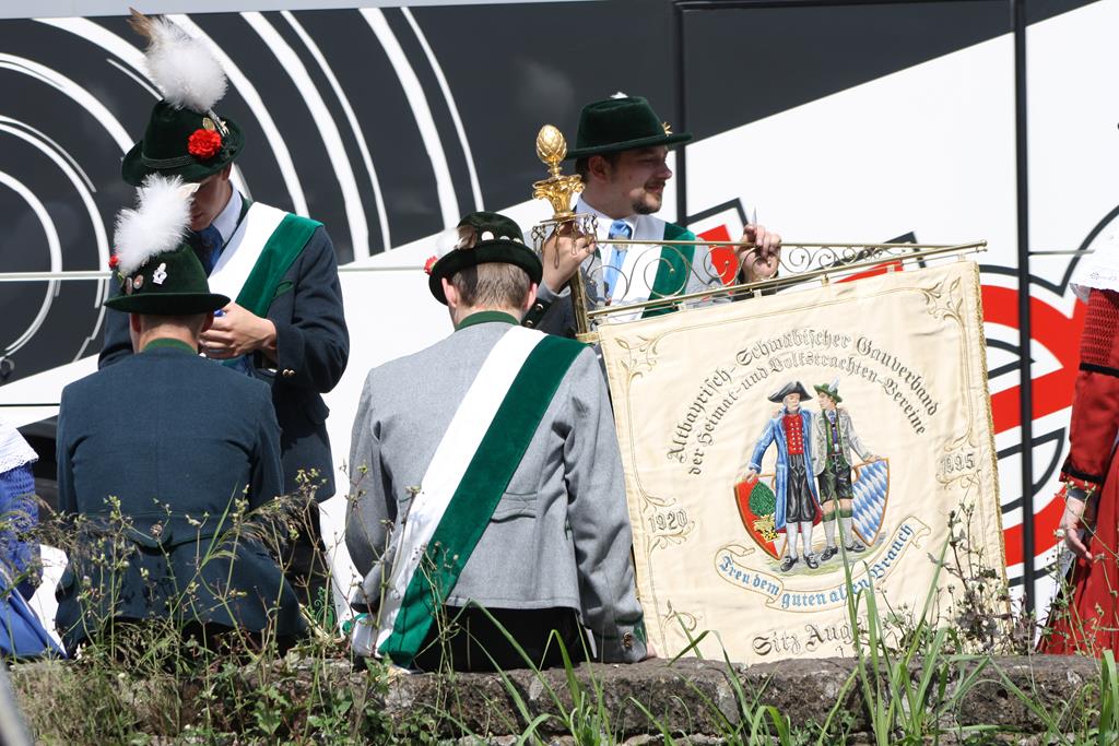 Ein ganz besonderes Dankschee gilt hier unserem Standartenträger, Gauvorplattler Toni Kürzinger. In Ermangelung eines geeigneten sicheren Abstellplatzes für unsere Standarte hat er an diesem Vormittag die Standarte mitgetragen. Die Aufmerksamkeit und die Bewunderung waren ihm auf jeden Fall sicher. Aber was wäre eine Grande Parata ohne Standarte?